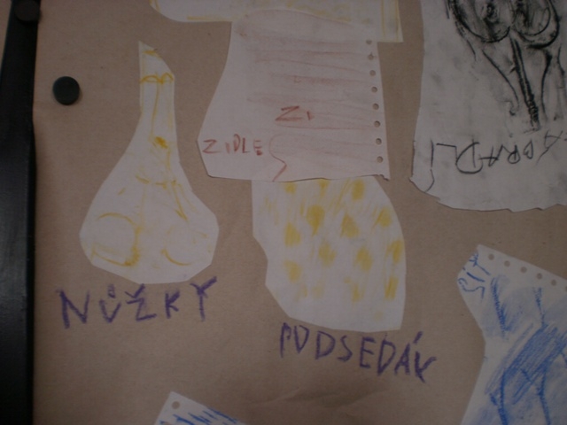 Žáci dostanou měkký papír a voskovky (giacondy). Chodí po třídě a šrafují na papír věci ze třídy. Stopy, které přešrafovali, si žáci vystřihnou a lepíme je společně na balící papír. Nezapomeneme popsat, co jsme přešrafovali.